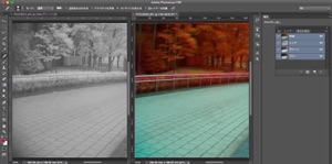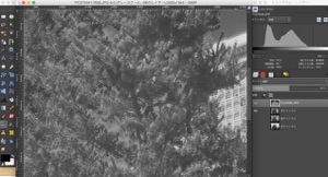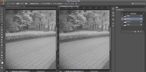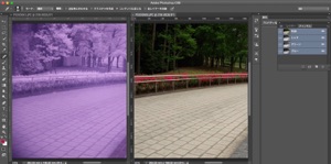 5)赤外線写真レイヤーと、可視光写真のチャンネルの一つを表示(眼のマークをつける)