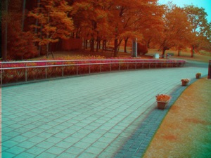 1枚のデジタル赤外線写真にこのような偽色処理を施すことはできません。デジタル赤外線写真の場合、R、G、Bの3つのチャンネルに記録されている画像データは(赤、緑、青の異なる3つのフィルターを通ってきた光ではありますが)全て赤外線による画像データだからです。
